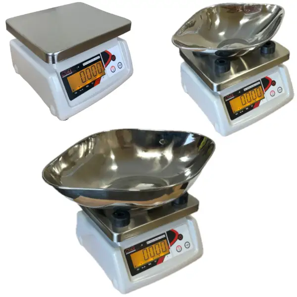 Good, solid basic flat plate Trade Approved bench style dual range digital scales with large clear backlit display suitable for any general weighing applications. Available with flat weigh-plate, and with small or large fitted scoops. Operated by internal rechargeable battery giving typically 80 - 100 hours of use per charge, charger supplied. Manufactured for CSG by Baxtran. Capacity choices from 6 kg. to 25 kg