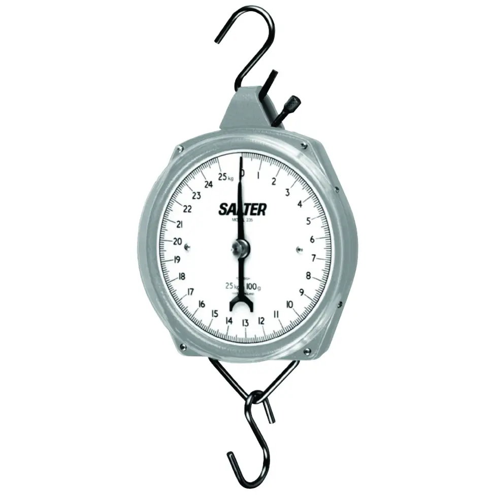 Compact and robust 150 mm. diameter dial hanging scale in a traditional hammer finish grey metal case. Capacity choices from 5 Kg. to 100 Kg.