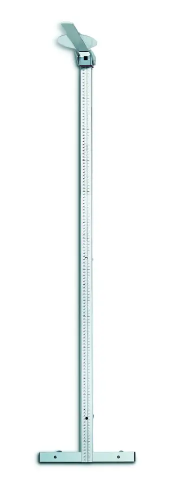 Specially developed for wall mounting, this measuring rod is aligned to work exactly to the millimeter from head to toe. Its broad measuring slide and heel positioner are professional prerequisites. The telescopic measuring rod ensures that the result can be easily read at eye level even for the tallest patient. When not in use, the measuring slide can be folded down for safety.