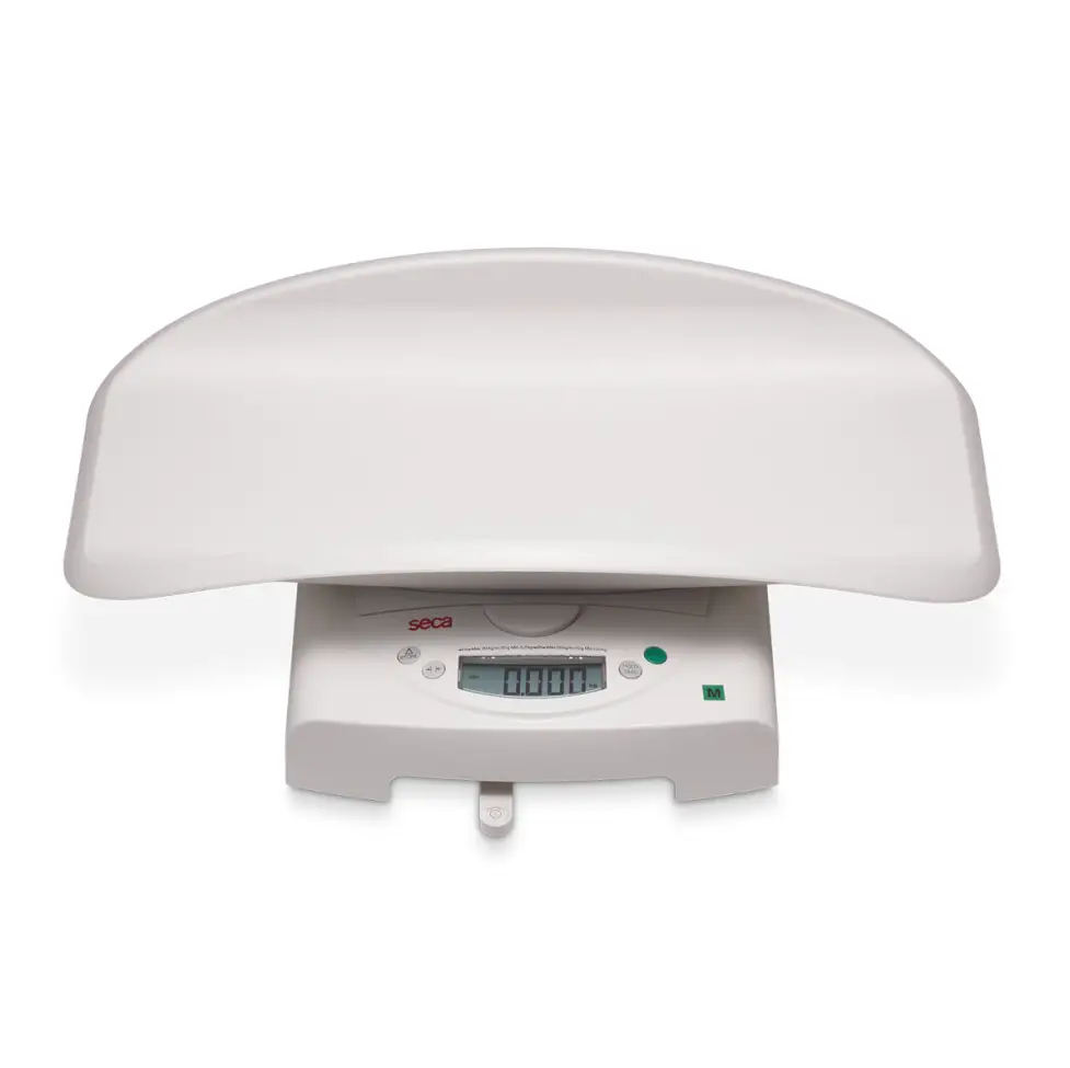 Portable multi-purpose battery powered electronic baby and infant scale with detachable tray for weighing in a standing or reclining position. Optional sturdy carrying bag, and non-stretch measuring tape band to determine head circumference and symmetry. Class III Approval Price includes approval certification fees. Capacity choices 20 Kg. and 50 Kg.